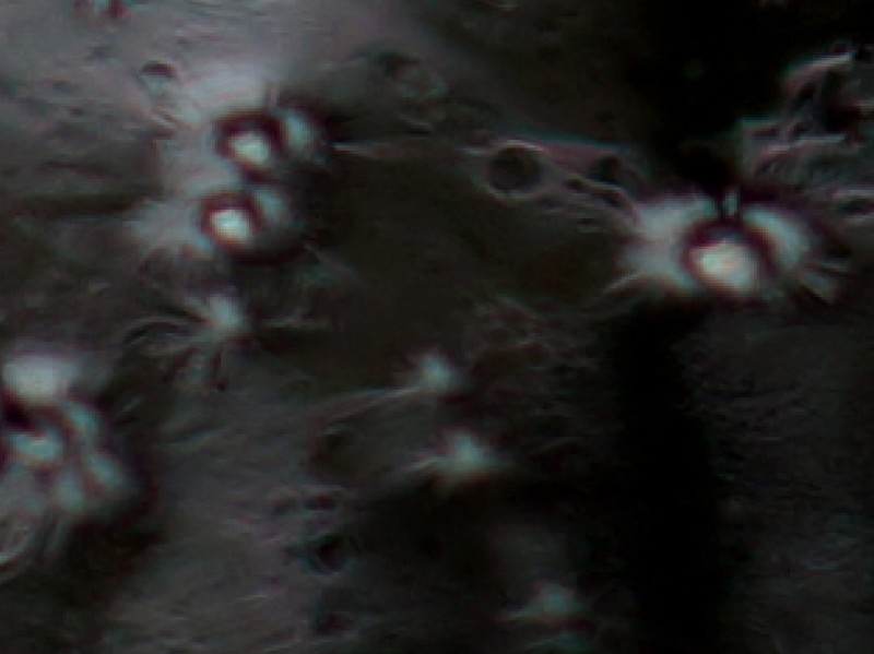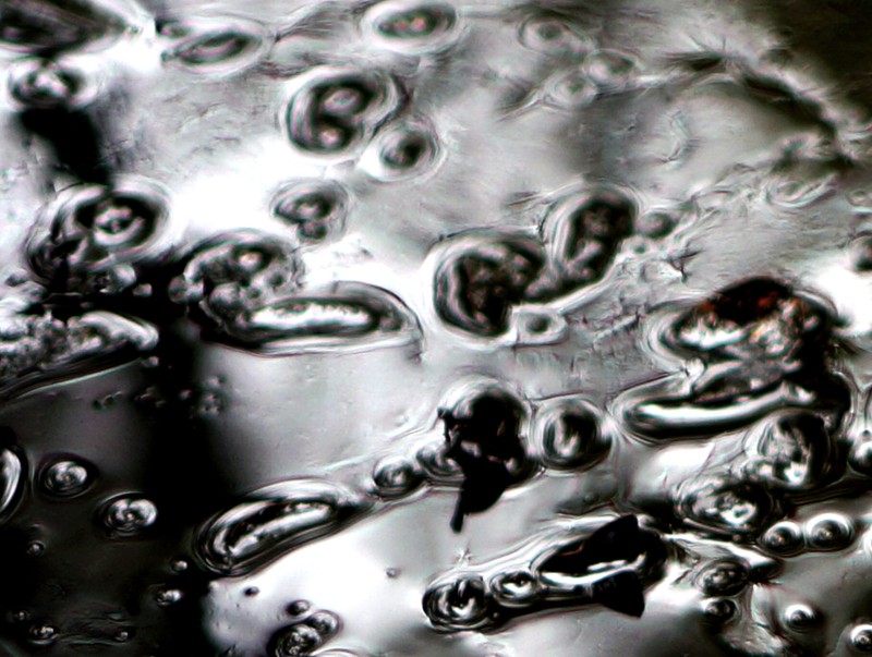 La dernière image montre le tracé d'un vers filiforme, vivant dans le pétrole brut de la résurgence.