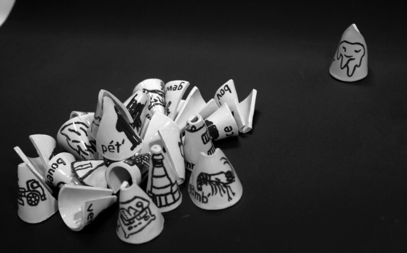 Une série de pièces en céramique émaillée sont réalisées pour représenter et manipuler des éléments présents sur le terrain qui ont une agentivité forte de mise en relation des humains avec les sous-sols. Comme des pions, ces pièces sont utilisées lors de discussions et sessions de travail, en les agençant par groupes et constellations.